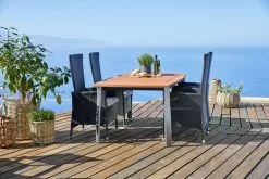 JUTLANDIA ELLEKILDE L180 Bord Teak + 4 BRAVA Stol Grå Snabbtorkande