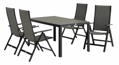 | Material | Ställning: Aluminium, Bordsskiva: Konstträ (polystyren)Konstträ är ett underhållsfritt, syntetiskt material med naturlig trälook. Det är tillverkat av plast, såsom polystyren, som ger ett slitstarkt och väderbeständigt material. Konstträ är UV-skyddat, vilket säkerställer en färgbeständig yta., Ben: Aluminium |