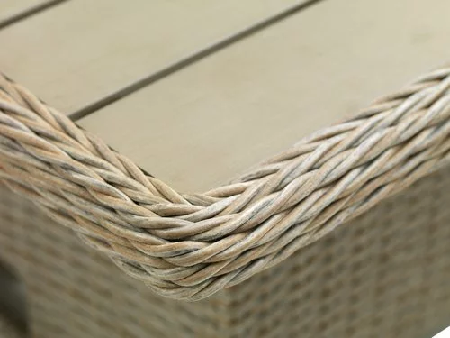 | Material | Ram: Aluminium, Konstrotting (polyetylen)Konstrotting är ett syntetiskt lättviktsmaterial. Det är slitstarkt, UV-skyddat och väderbeständigt., Bordsskiva: Konstträ (polystyren)Konstträ är ett underhållsfritt, syntetiskt material med naturlig trälook. Det är tillverkat av plast, såsom polystyren, som ger ett slitstarkt och väderbeständigt material. Konstträ är UV-skyddat, vilket säkerställer en färgbeständig yta. |