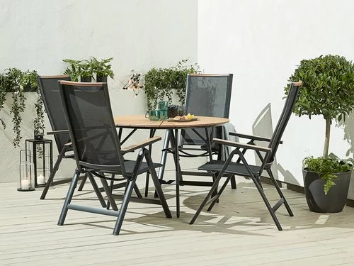 | Material | Ram: Aluminium, Rygg: Textilene (polyester/PVC)Textilene är ett slitstarkt mesh-tyg vävt av plastöverdraget polyestergarn. Detta ger ett underhållsfritt, färgbeständigt tyg, som torkar snabbt och är lätt att rengöra, Sits: Textilene (polyester/PVC)Textilene är ett slitstarkt mesh-tyg vävt av plastöverdraget polyestergarn. Detta ger ett underhållsfritt, färgbeständigt tyg, som torkar snabbt och är lätt att rengöra, Armstöd: Aluminium, Ben: Aluminium |