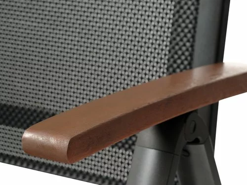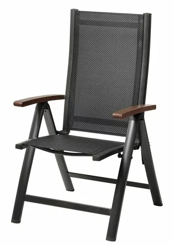 Aluminium, textilene och oljat FSC® hårdträ. 6 positioner. Hopfällbar.