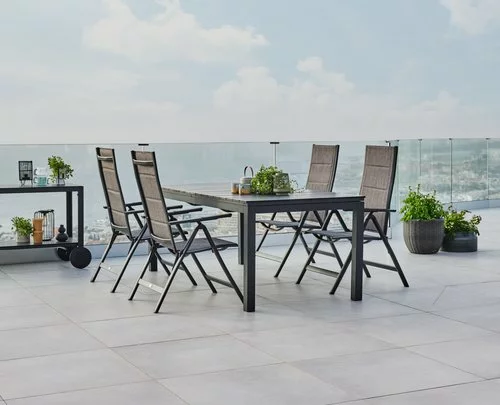 | Material | Ram: Aluminium, Rygg: Polypropylen, Textilene (polyester/PVC)Textilene är ett slitstarkt mesh-tyg vävt av plastöverdraget polyestergarn. Detta ger ett underhållsfritt, färgbeständigt tyg, som torkar snabbt och är lätt att rengöra, Sits: Polypropylen, Textilene (polyester/PVC)Textilene är ett slitstarkt mesh-tyg vävt av plastöverdraget polyestergarn. Detta ger ett underhållsfritt, färgbeständigt tyg, som torkar snabbt och är lätt att rengöra, Armstöd: ABS (akrylnitrilbutadienstyren), Aluminium, Ben: Aluminium |