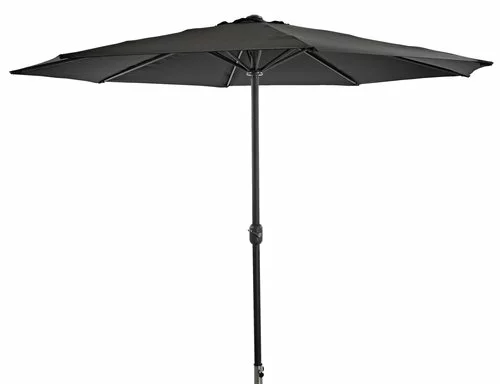 Vattentålig, UV-skyddad polyesterduk och aluminiumstång. Med tiltfunktion, handvev och ventilation. Ø300 x H246 cm